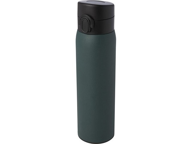 Стильная фляга-термос из переработанной нержавеющей стали, сертифицированная RCS, с простым механизмом открытия с помощью кнопки. Фляга герметична, а благодаря медной вакуумной изоляции напитки будут сохраняться горячими или холодными в течение нескольких часов. Объем составляет 450 мл. Поставляется в подарочной коробке из переработанного картона. Recycled stainless steel, Recycled PP Plastic. Packaging: FSC Mix Credit P5.1 CU-COC-877277.