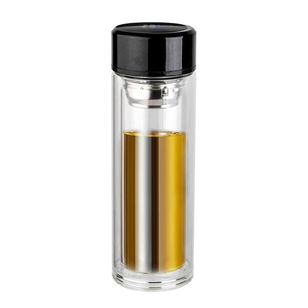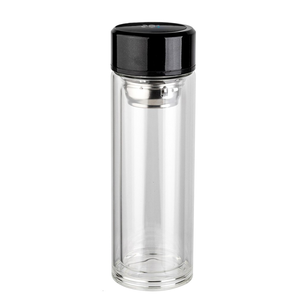 Светодиодный дисплей укажет температурный режим содержимого напитка. Емкость батареи дисплея рассчитана на 78000 касаний. Объем бутылки 350 мл. Термос стеклянный c дисплеем Marcus выполнен из сверхпрочного боросиликатного закаленного стекла. Основное преимущество материала в том, что не разобьется и не обожжет горячим напитком Ваши руки. Внутри бутылки находится инфьюзер, который упростит процесс заваривания чая. Просто засыпьте заварку в инфьюзер, залейте кипяток в нижнюю часть бутылки, соедините, напиток готов. Оптимальная температура для заваривания 80-85С. Стеклянный термос является довольно безопасным при соблюдении некоторых правил эксплуатации и хранения: - Перед использованием обязательно убедитесь в отсутствии трещин и сколов на корпусе термоса – для этого проведите визуальный беглый осмотр, допускается встряхивание пустого термоса, чтобы убедиться в отсутствии трещин и расслоения в стеклянных колбах. – Наполняйте термос водой не горячее 80-85 градусов, чтобы предотвратить возникновение пара, который может привести к разрушению колбы. – Открывайте наполненный термос медленно. – Следите за герметичностью крышки и корпуса, в случае обнаружения протечки, термос использовать нельзя; – Стеклянный термос безопасен при бережном обращении, однако, если он разобьется, осколки могут нанести вред, поэтому рекомендуется хранить и переносить термос в защитном пакете или контейнере. Соблюдая эти простые правила, вы обезопасите себя и своих близких от неприятных ситуаций, связанных с использованием стеклянного термоса.