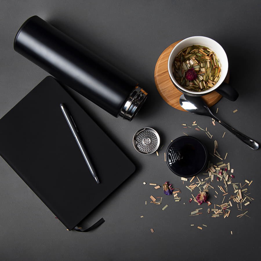 Термос THERMO с ситечком, 500 мл; нержавеющая сталь, черный