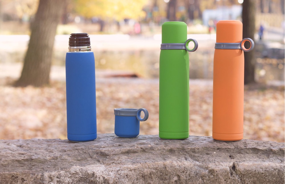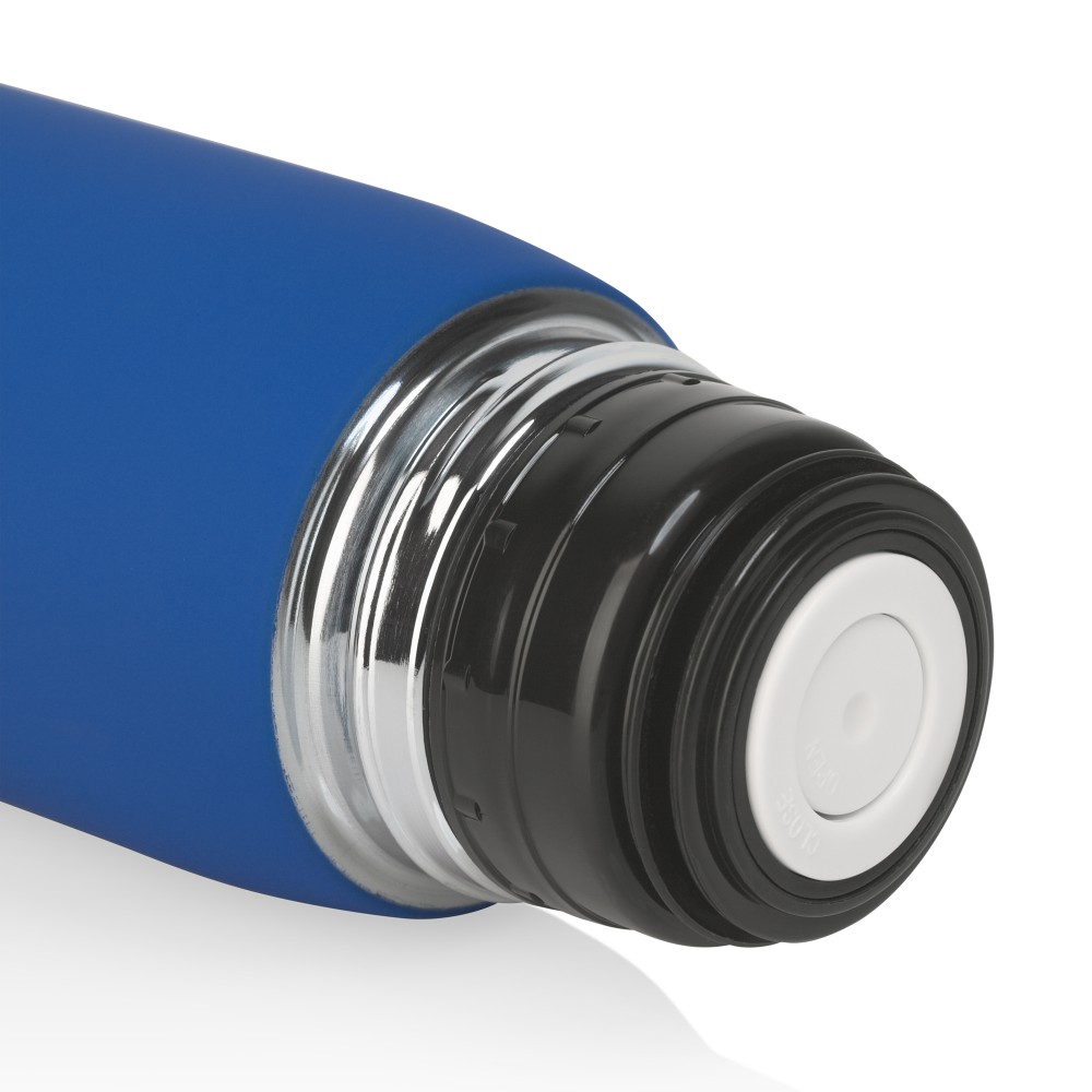 Внешняя стенка термоса изготовлена из нержавеющей стали с уникальным прорезиненным напылением soft-touch, которое эффектно персонализируется по окружности встык. Внутренняя стенка выполнена из высококачественной пищевой, нержавеющей стали.