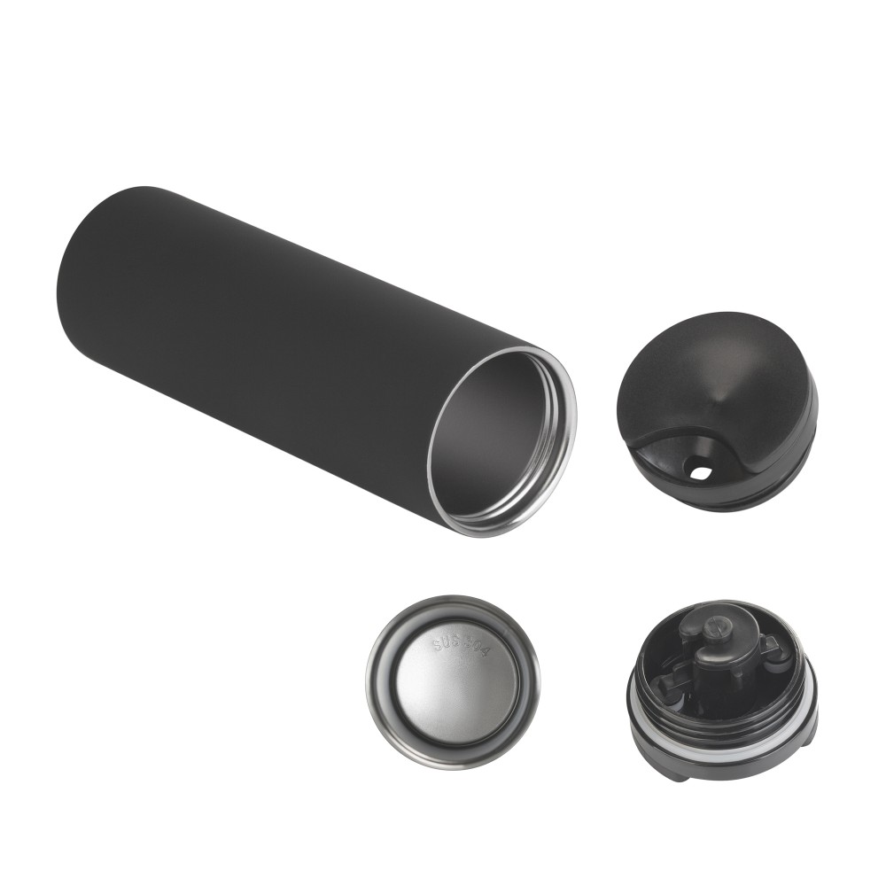 Внутри — пищевая нержавеющая сталь, снаружи — приятное прорезиненное покрытие soft touch. Термостакан прекрасно подойдёт для хранения горячих напитков благодаря вакуумной изоляции, которая держит высокую температуру, не нагревая внешние стенки.