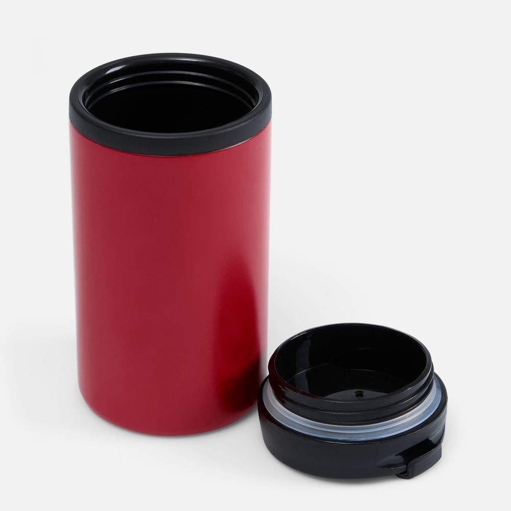 Двухслойная конструкция из пищевого пластика внутри и нержавеющей стали снаружи. Герметичная завинчивающаяся крышка с откидным клапаном для питья.
