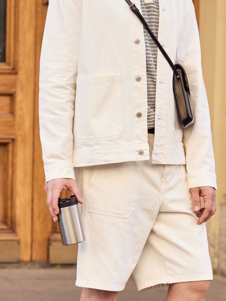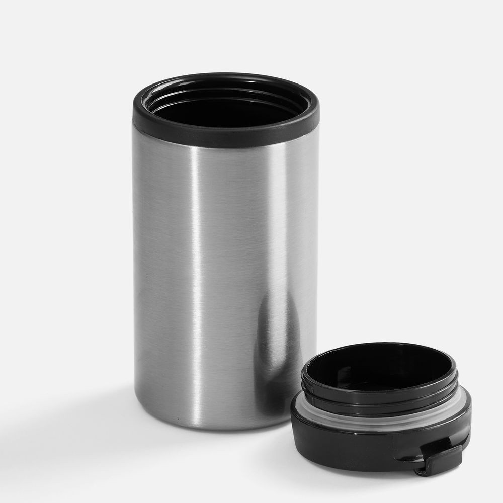 Двухслойная конструкция из пищевого пластика внутри и нержавеющей стали снаружи. Герметичная завинчивающаяся крышка с откидным клапаном для питья.