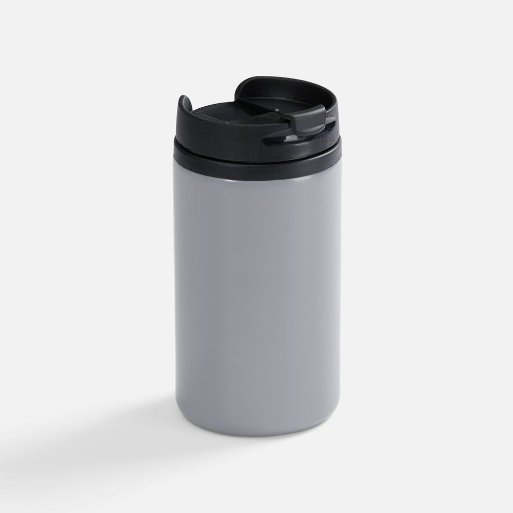 Двухслойная конструкция из пищевого пластика внутри и нержавеющей стали снаружи. Герметичная завинчивающаяся крышка с откидным клапаном для питья.
