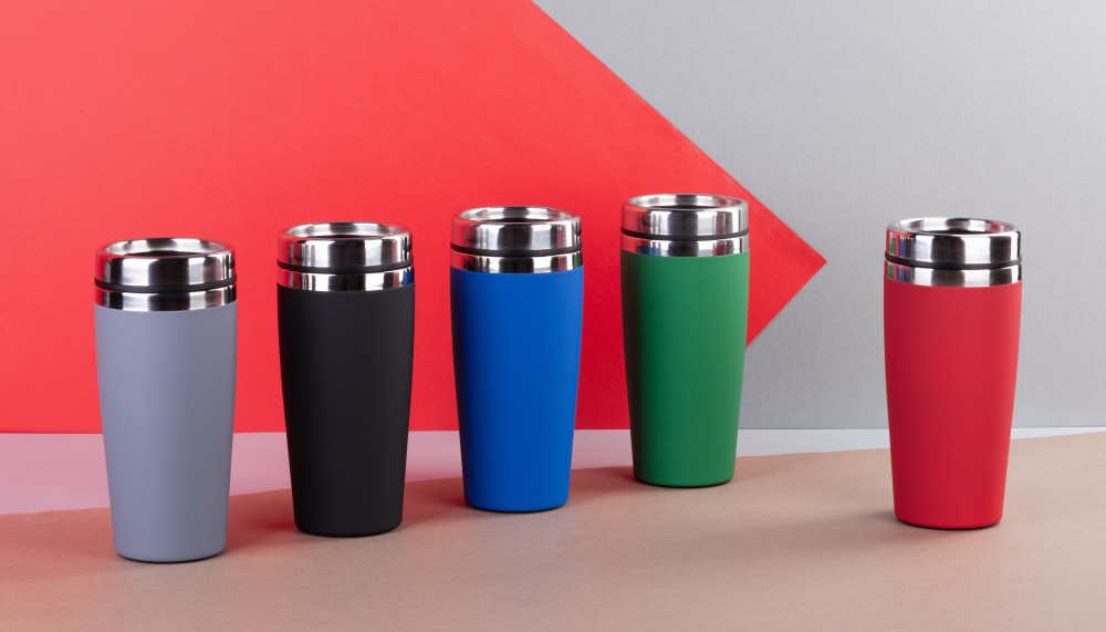 Внешняя стенка термостакана изготовлена из нержавеющей стали с уникальным прорезиненным напылением soft-touch, а внутренняя стенка выполнена из  высококачественной пищевой, нержавеющей стали. Корпус изделия персонализируется по окружности встык. У термостакана отвинчивающаяся крышка.
