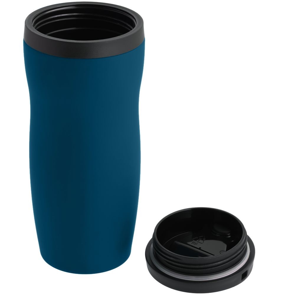 Двухслойная конструкция из нержавеющей стали снаружи и пищевого пластика внутри. Герметичная завинчивающаяся крышка с откидным клапаном для питья. Покрытие софт-тач. В отверстие в крышке можно вставить шнурок для удобного ношения стакана на руке. Шнурок в комплект не входит.