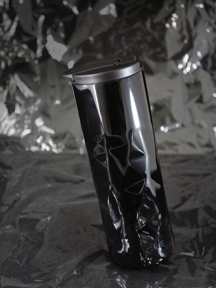 Двухслойная вакуумная конструкция из нержавеющей стали внутри и снаружи, герметичная завинчивающаяся крышка с откидным клапаном для питья.