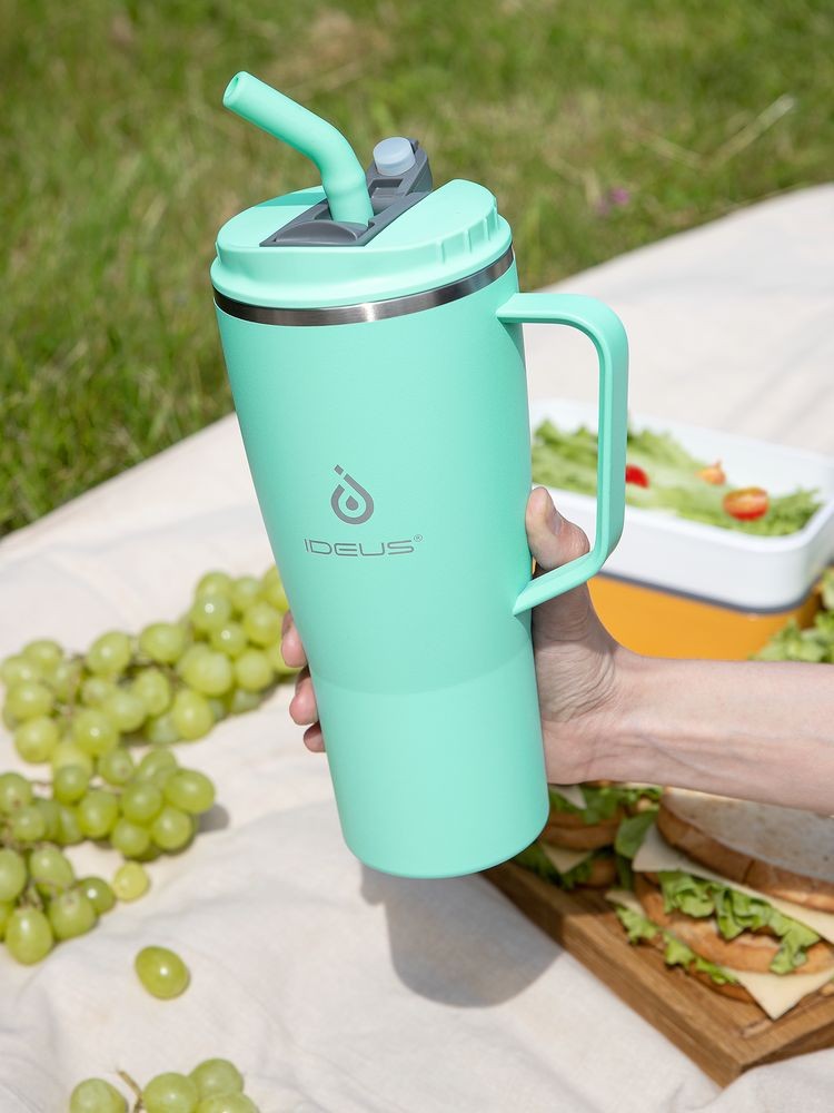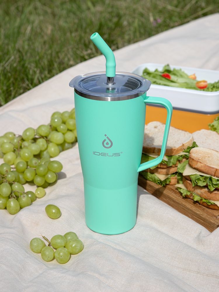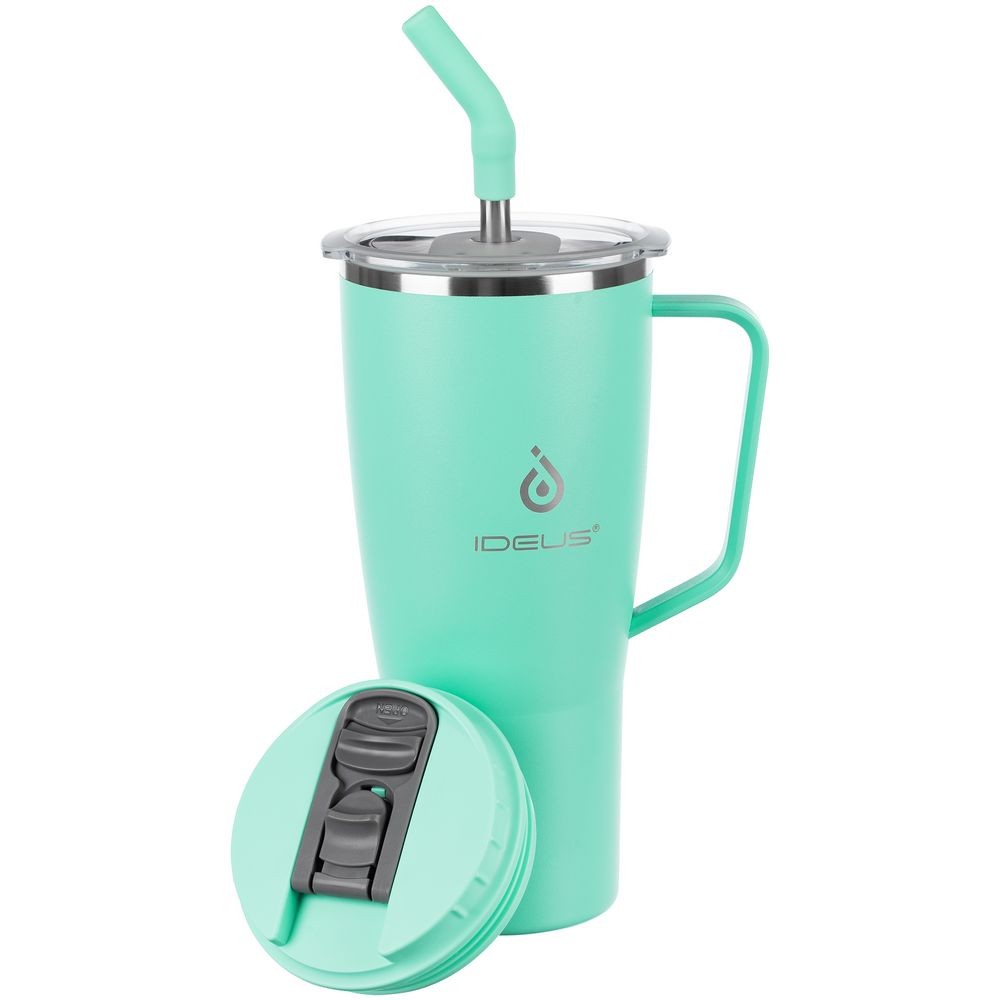 • 2 крышки в комплекте: одна на 100% герметичная с механизмом блокировки отверстия для питья, вторая — с отверстием для трубочки