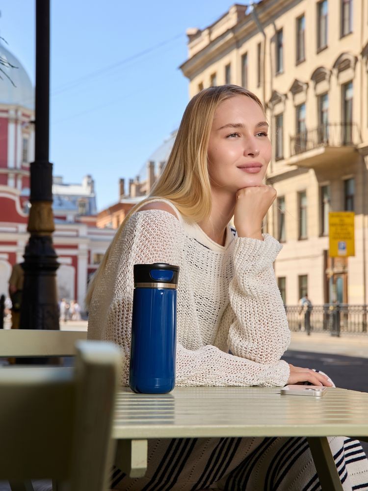 • Специальная система открывания клапана JustPushTheButton: чтобы открыть клапан для питья, нужно нажать боковую кнопку, чтобы закрыть, нужно нажать кнопку сверху крышки