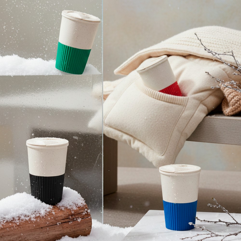 Wavy – это термостакан с оригинальной конструкцией: крышка-слайдер и пластиковая манжета – делают его использование максимально комфортным! Манжета позволяет удобно держать стакан и пить при этом горячие напитки. Экологичный материал, состоящий на 50% из пшеничного волокна — удобен и практичен в пользовании. Можно нагревать в микроволновке, но всё же желательно не перегревать больше 80°С. Стакан станет вашим верным спутником для офисной жизни и для неспешных прогулок!