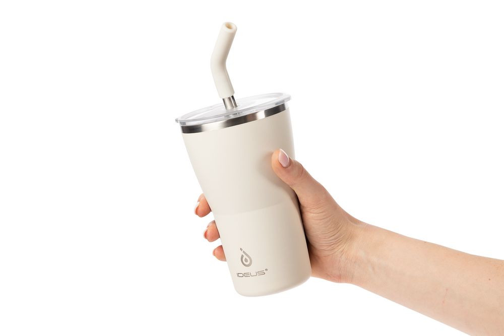 - 2 крышки в комплекте: одна на 100% герметичная с механизмом блокировки отверстия для питья, вторая — с отверстием для трубочки