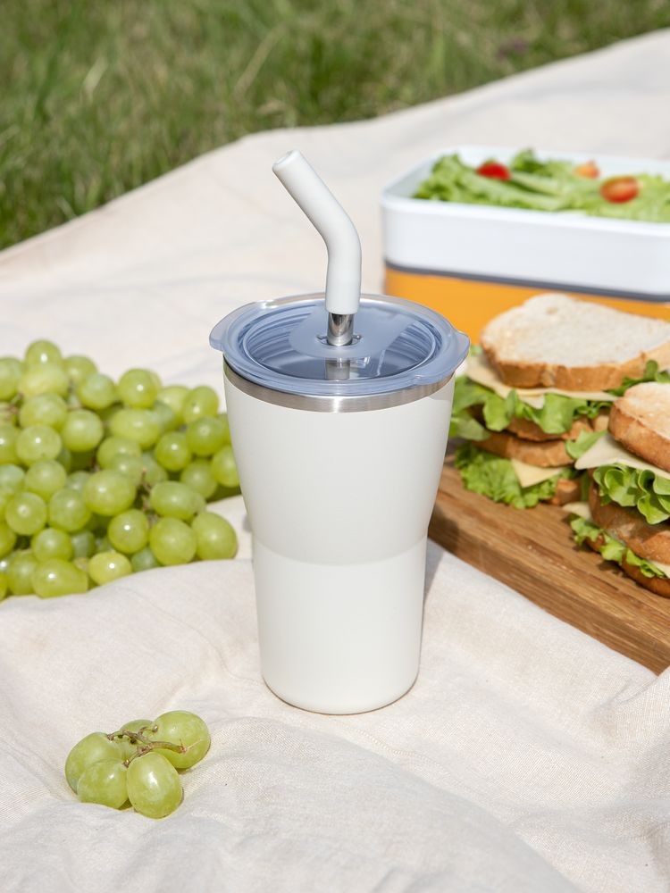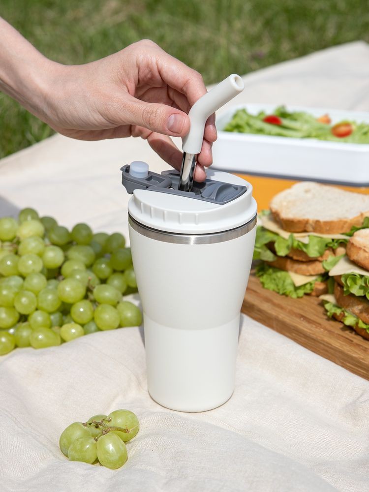 • 2 крышки в комплекте: одна на 100% герметичная с механизмом блокировки отверстия для питья, вторая — с отверстием для трубочки