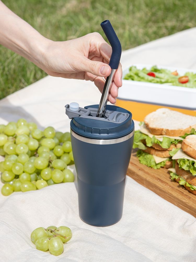 Материал: корпус - нержавеющая сталь, 18/8; крышка - пластик; трубочка - нержавеющая сталь, пищевой силикон