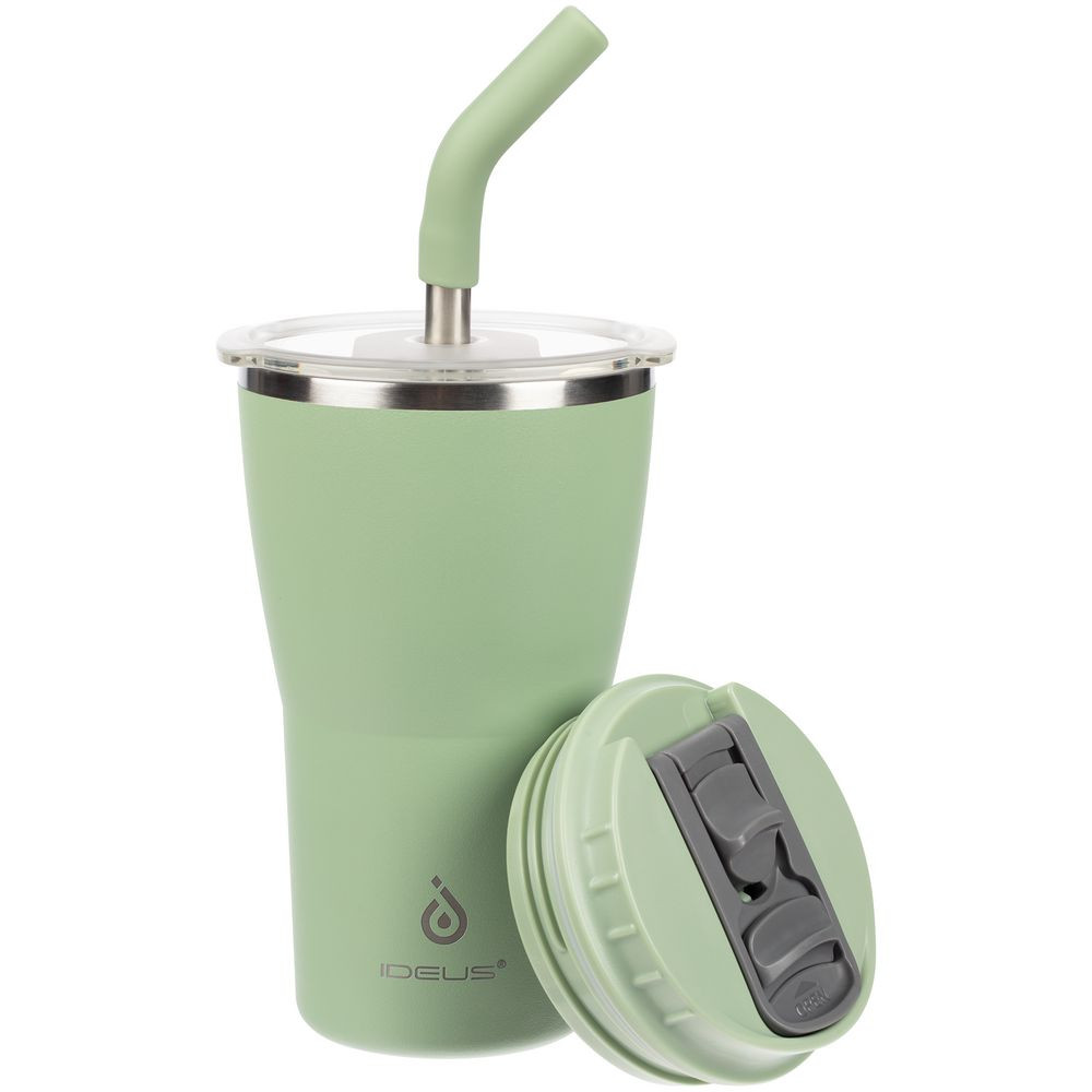 - 2 крышки в комплекте: одна на 100% герметичная с механизмом блокировки отверстия для питья, вторая — с отверстием для трубочки