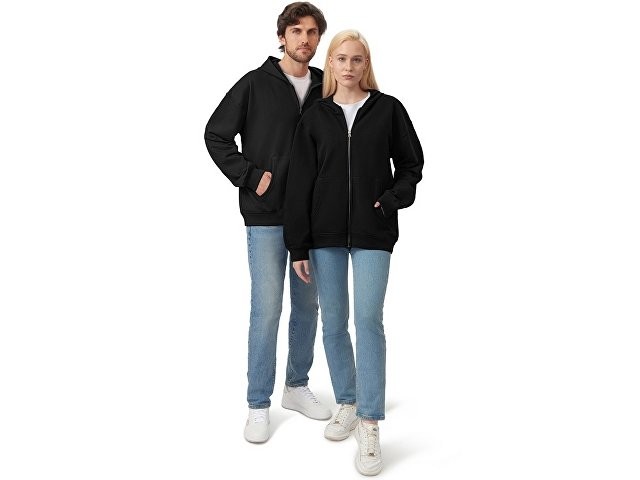 Толстовка на молнии с капюшоном. Риб 2х2 по манжетам и низу изделия. - удобный капюшон на подкладке из основного материала - посадка оверсайз - вместительный карман кенгуру - внутри на спинке кокетка - дополнительное место для нанесения лого клиента