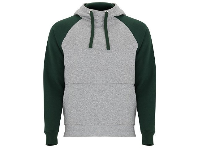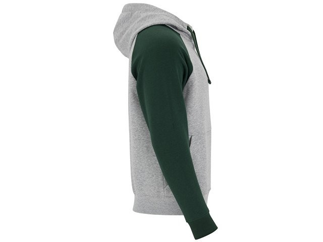 Толстовка с капюшоном "Badet" мужской, серый меланж/бутылочный зеленый