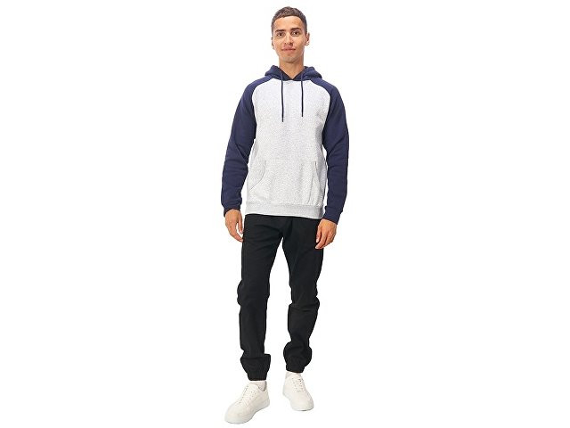 Толстовка с капюшоном (худи) из плотного футера с мягким начесом внутри. Модная и практичная модель, подходит для прогулок по городу, активного отдыха, путешествий и, конечно, промо мероприятий. - Прямой силуэт. - Контрастный рукав реглан и капюшон. - Капюшон с подкладкой из основного материала с металлическими люверсами, круглым шнуром с металлическими наконечниками. - Удобный карман-кенгуру, край отделан рибом 1х1. - Низ толстовки и манжеты рукавов обработаны рибом 1x1. - Полотно с небольшим содержанием полиэстера долго сохраняет форму и не мнется.