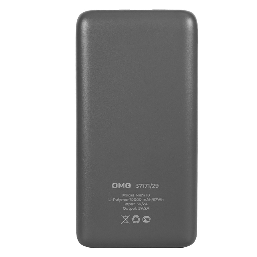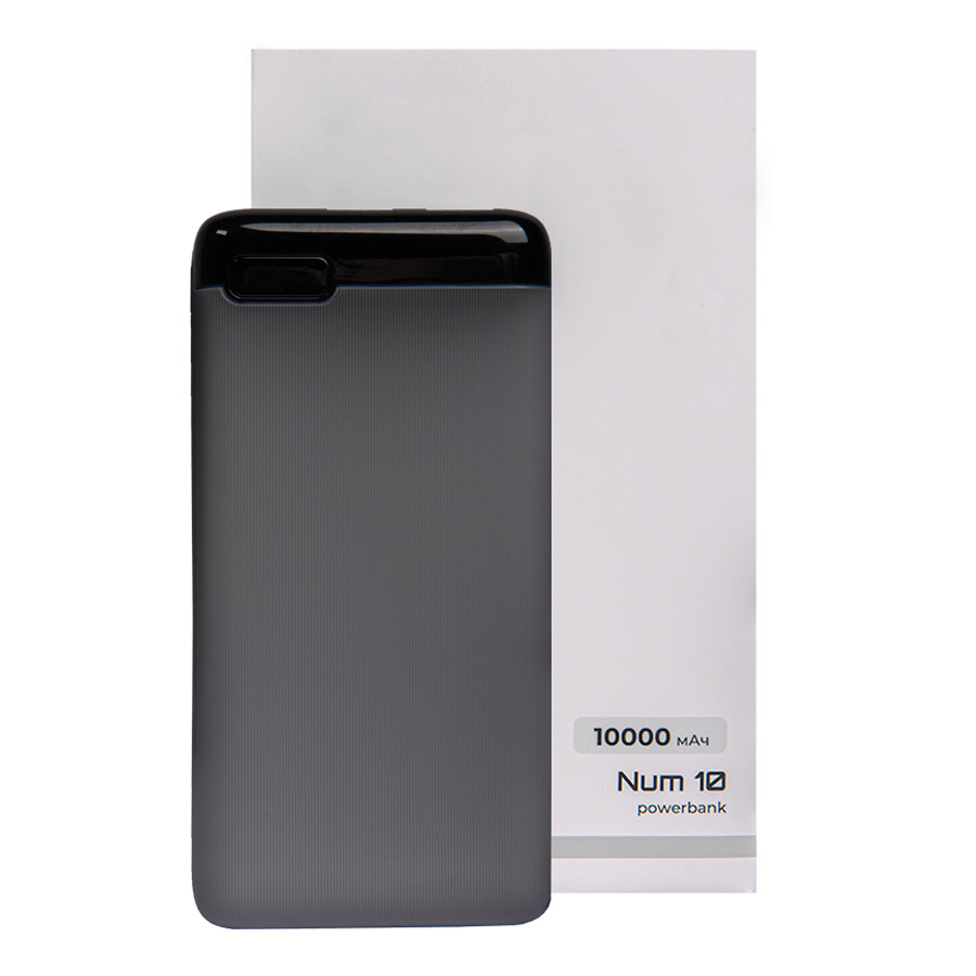 Универсальный аккумулятор Num 10 (10000 мАч), белый, 13,9х6.9х1,4 см, Серый