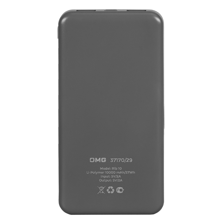 Универсальный аккумулятор Rib 10 (10000 мАч), белый, 13,5х6.8х1,5 см, Серый