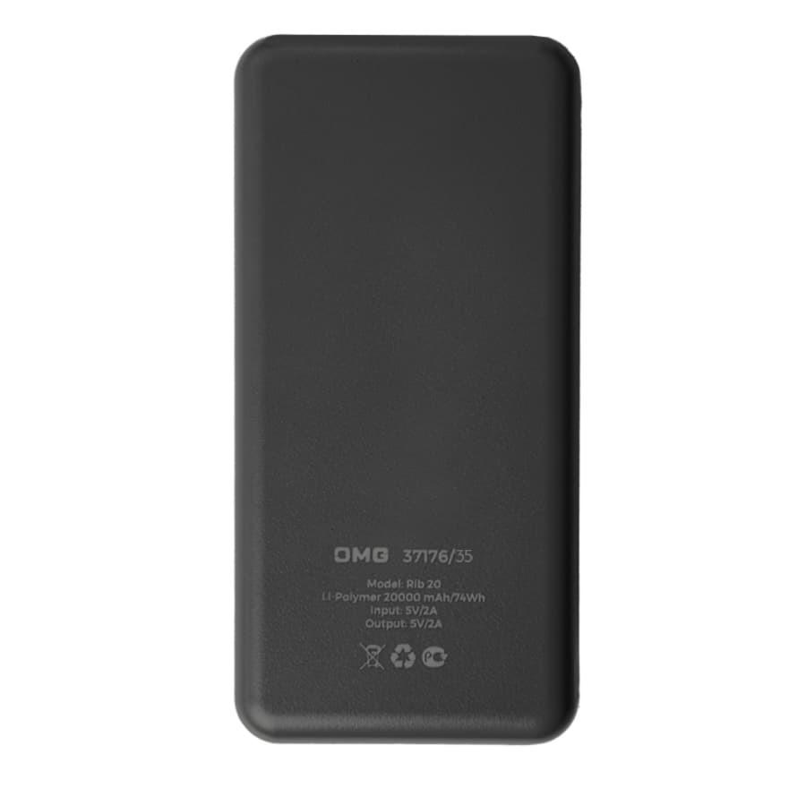 Универсальный аккумулятор Rib 20 (20000 мАч), серый, 14,1х6.9х2,8 см, Черный
