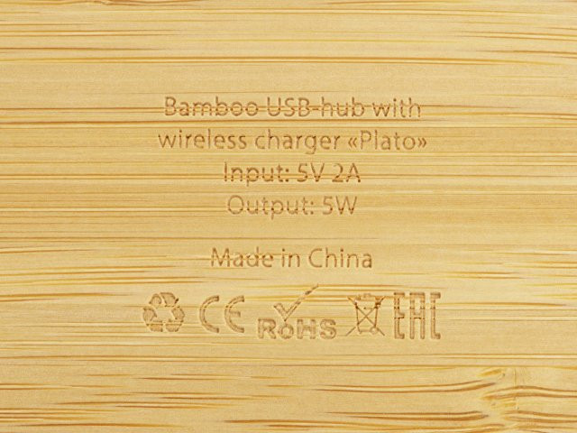 Лаконичный USB-хаб просто создан для нанесения логотипа или другого изображения! Корпус выполнен из натурального восполняемого материала — бамбука. Помимо функции разветвителя Plato выполняет функцию беспроводной зарядки: просто положите свой смартфон, и его аккумулятор начнет заряжаться. - натуральный восполняемый материал - заряжает Qi-совместимые смартфоны - 2 порта USB для зарядки устройств