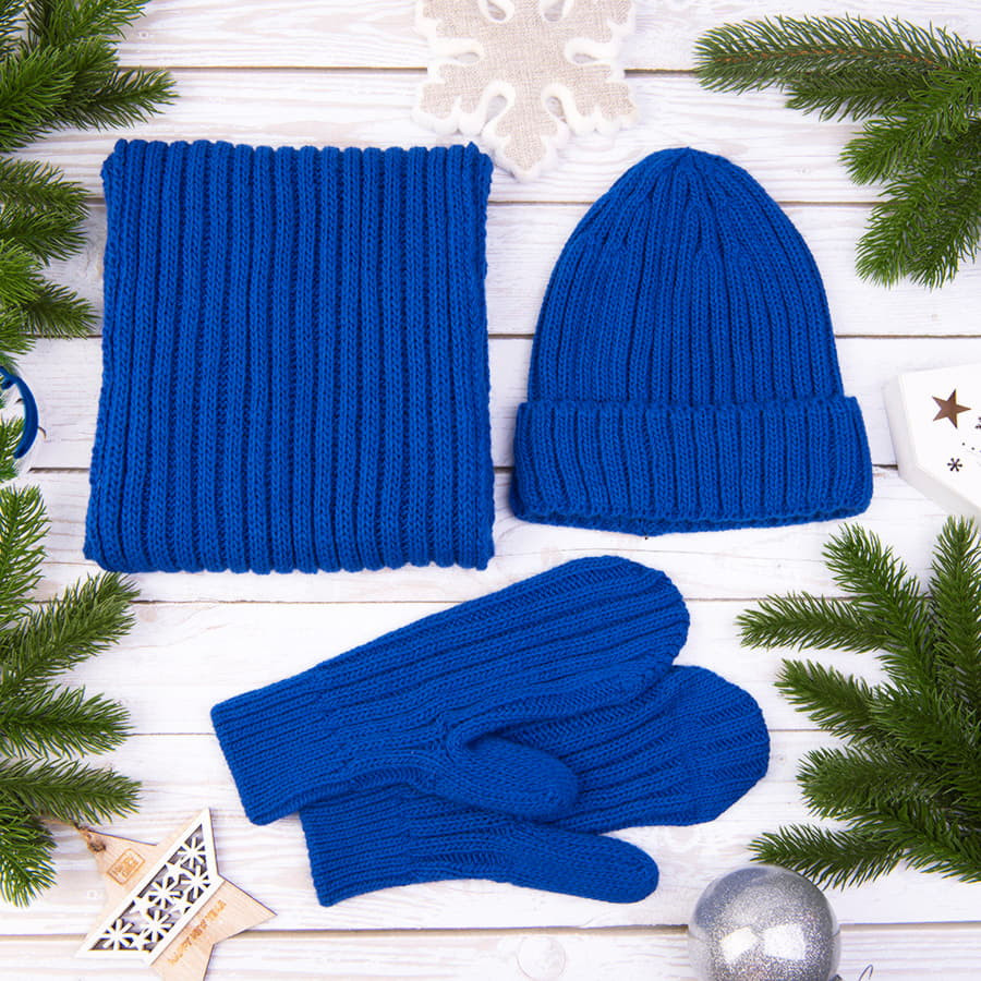 Варежки вязаные НАСВЯЗИ© шерсть/акрил, Синий