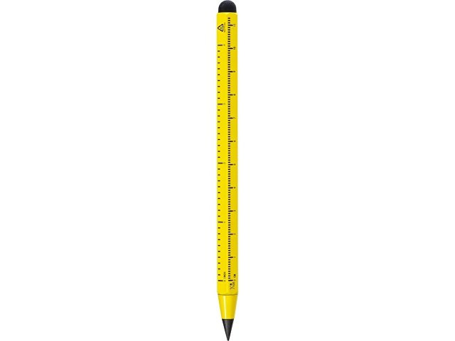 Карандаш изготовлен из переработанного алюминия. В отличие от обычных карандашей его не нужно точить, и он не пачкает руки. Наличие на корпусе двух линеек, в сантиметрах и в дюймах, позволит при необходимости моментально измерить что-либо или перевести одни единицы в другие. С обратной стороны карандаша есть стилус, которым удобно что-то делать на телефоне или планшете. • Долго служит • Не нужно точить • Наличие шкал на линейке в сантиметрах и дюймах • Стилус на обратном конце