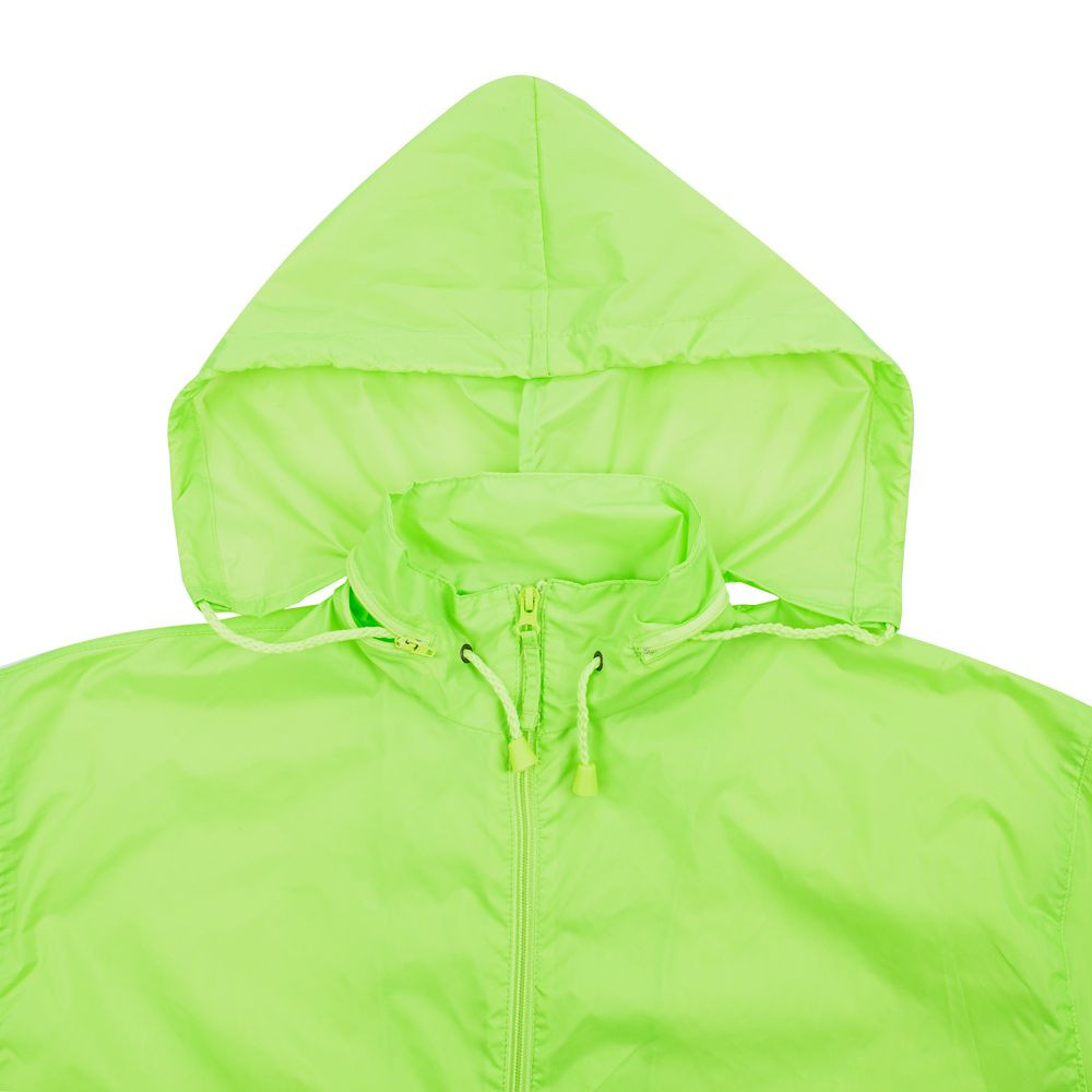 - Карман куртки служит сумочкой для нее: при необходимости ветровку можно компактно сложить, застегнуть карман на молнию и использовать пришитую эластичную тесьму, чтобы носить сложенную ветровку с собой на поясе