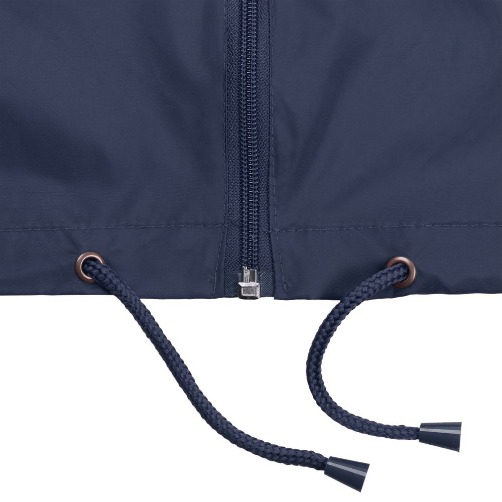- Карман куртки служит сумочкой для нее: при необходимости ветровку можно компактно сложить, застегнуть карман на молнию и использовать пришитую эластичную тесьму, чтобы носить сложенную ветровку с собой на поясе.