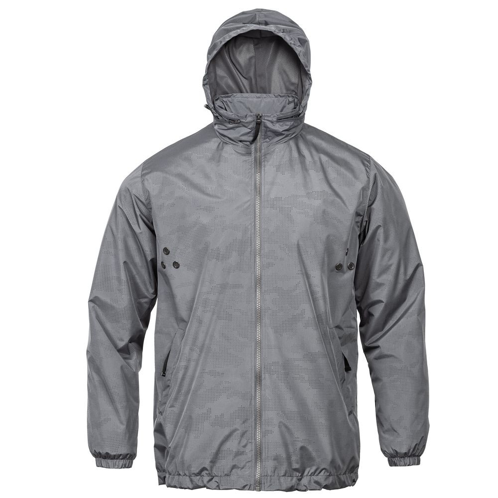 Ветровка с капюшоном из ткани с водоотталкивающей пропиткой и светоотражающим рисунком.