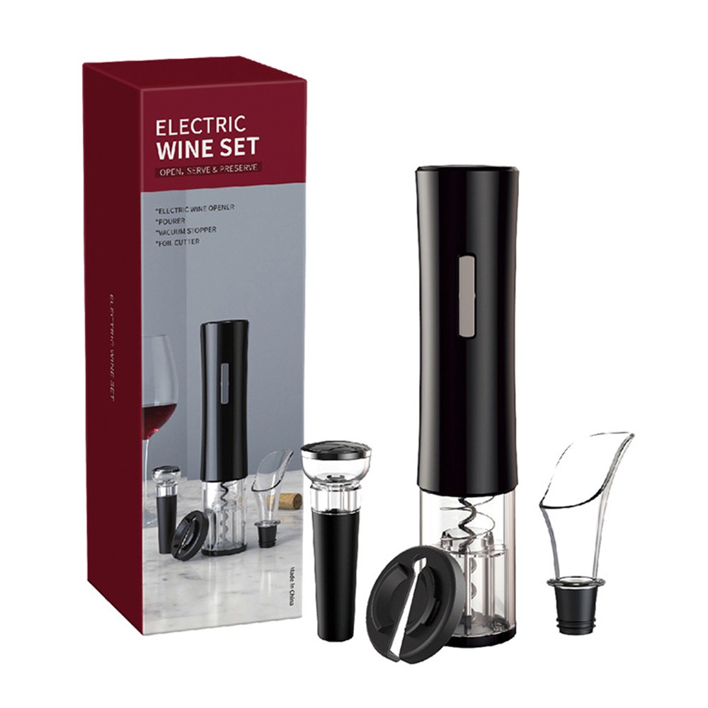 Винный набор - это оригинальный набор для истинных ценителей вина! Отличный подарок по любому случаю. Жизнь полна изысканных моментов. Набор включает в себя: - электрический штопор (работает от батареек типа АА, в комплект не входят) - резак для срезания фольги - аэратор (служит для аэрации и насыщения напитка кислородом) - пробка (для закупоривания открытой бутылки).