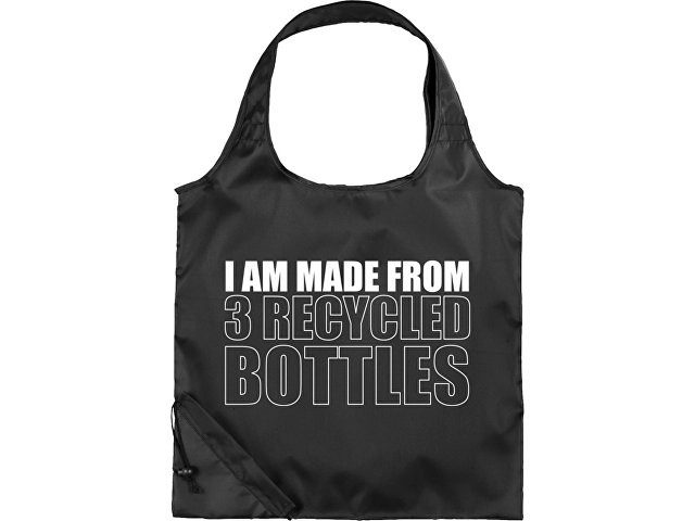 Сумка-шоппер Packaway 210D на 51% состоит из переработанного ПЭТ-пластика со специальным чехлом, обеспечивающим легкое хранение. На одной из сторон сумки напечатан текст "I am made from 3 recycled bottles".