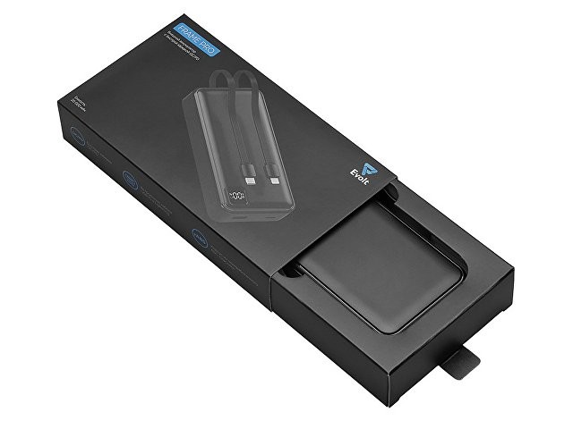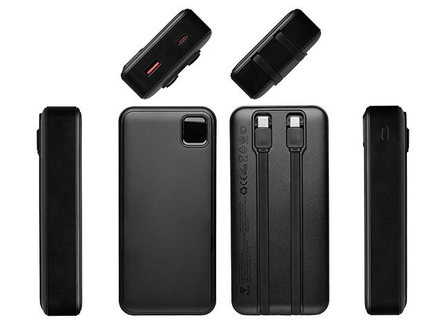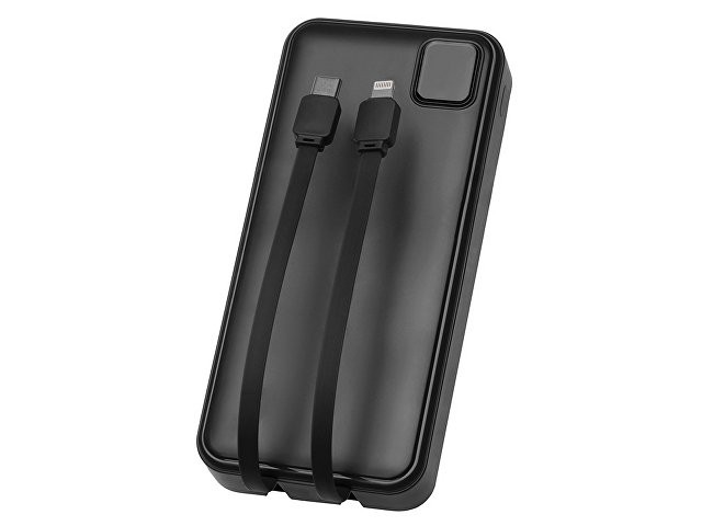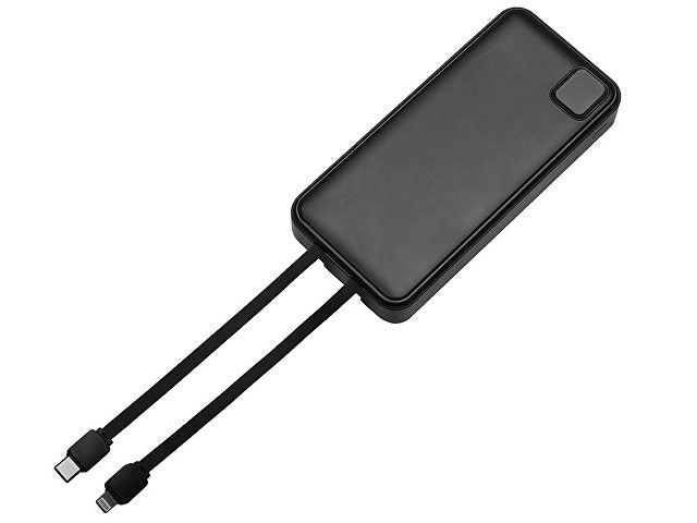 Внешний аккумулятор со встроенными кабелями «Фрэйм Про», быстрая зарядка, 20000мач, черный