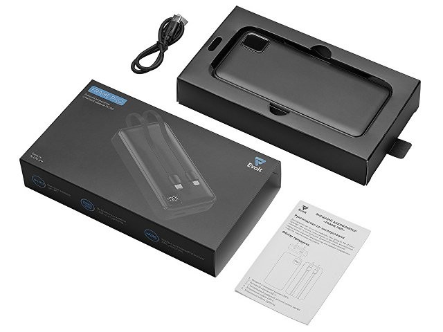 Удобный внешний аккумулятор с функцией быстрой зарядки и встроенными кабелями USB-C (симметричный разъём USB тип С) и Lightning (разъём в ранних версиях iPhone) — ваш надежный партнер в путешествиях, на встречах и в повседневных задачах. Цифровой дисплей в реальном времени показывает точный остаток заряда и статус быстрой зарядки, а встроенные кабели и несколько разъемов позволяют заряжать до 4 устройств. Прочный корпус из переработанного АБС-пластика и емкость 20000 мАч обеспечивают зарядом все ваши устройства на долгий срок. Идеальный выбор для тех, кто ценит комфорт и функциональность в одном устройстве. Продуманная упаковка: для открытия просто потяните за язычок, и появится гаджет с нанесением. - Встроенные кабели USB-C и Lightning — больше не нужно искать провода - Цифровой дисплей с точным отображением заряда - Удобная зона под нанесение логотипа - Функция быстрой зарядки, заряжает на 50% быстрее - Упаковка с удобным и быстрым открытием - До 4-5 полных зарядок смартфона