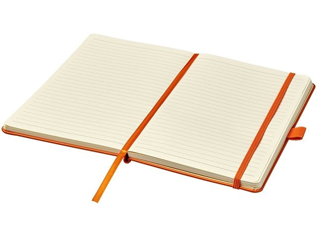 Записная книжка Nova формата A5 с переплетом. Записная книжка из искусственной кожи формата A5 (14,2 x 21,4 см) с резинкой, лентой-закладкой, петлей для ручки и задним карманом. Состоит из 96 листов линованной бумаги кремового цвета плотностью 80 г/м2 и поставляется в белом футляре Journalbook. Бумага, имитирующая кожу.
