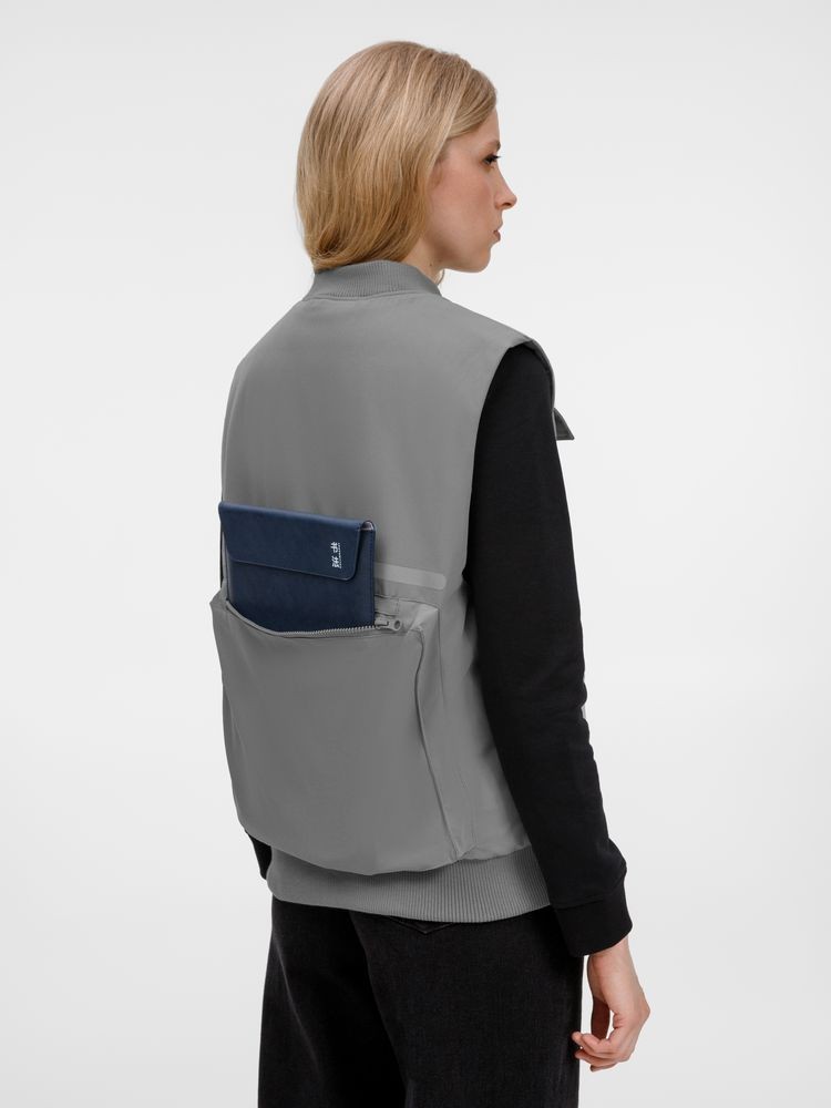 - 8 функциональных карманов, из них на передней части: 1 карман с клапаном для документов/рации, 1 карман для ручки, 5 вместительных на молнии, а так же 1 карман под планшет на молнии на спинке жилета
