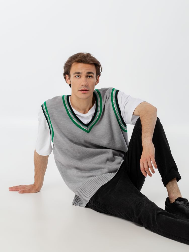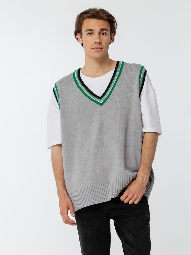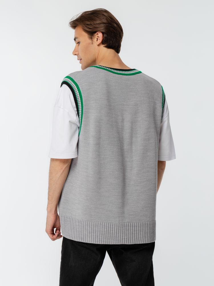 Оверсайз жилет с V-образным вырезом и цветной отделкой.В комплект к жилету прилагается легкая хлопковая сумка.