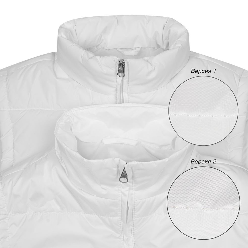 Жилеты представлены в двух версиях. Версия 1 — Произведена в Китае, с более гладким материалом верха. Информация по составу и размеру, а также рекомендации по уходу размещены на ярлыке в боковом шве. Картонная бирка с названием модели крепится на петельку для подвешивания на горловине. Жилеты версии 2 выделены добавлением "v2" к обозначению размера, произведены в России и имеют более рельефную поверхность.