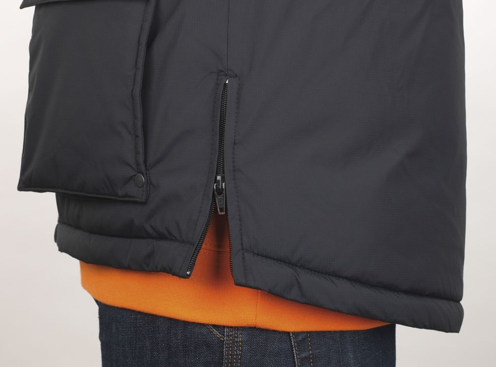 - Две молнии по бокам внизу для большей легкости движения, одна внутренняя молния на груди и одна — внизу жилета