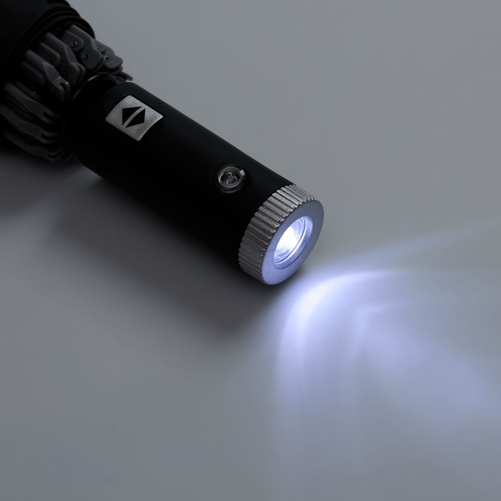 - Фонарик в ручке зонта и работает от 3 батареек типа LR44 (поставляются в комплекте)