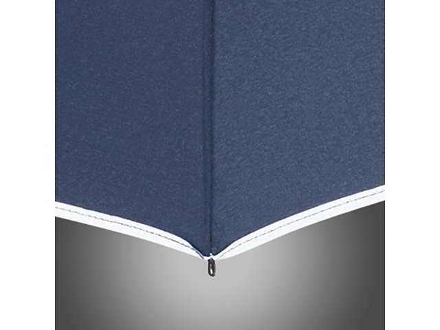 У этого зонта на двух диагональных клиньях и на отделке чехла имеется светоотражающее нанесение. Это обеспечивает дополнительную защиту в темное время суток. Мягкая пластиковая ручка с удобной кнопкой открытия и защита от порывов ветра делают зонт незаменимым аксессуаром.