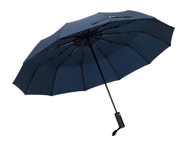Зонт складной мужской TORBER, автомат, 3 сложения, синий, каркас сталь/файбергласс, эпонж, пластиковая ручка, диаметр 103 см