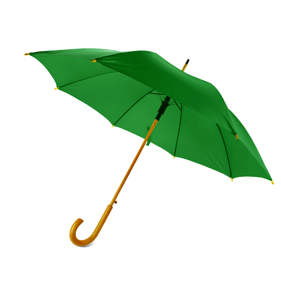 Полуавтоматический зонт, деревянная ручка и рама. Выполнен из качественных материалов. Поставляется без чехла Цвет, максимально приближенный к пантону 355С
