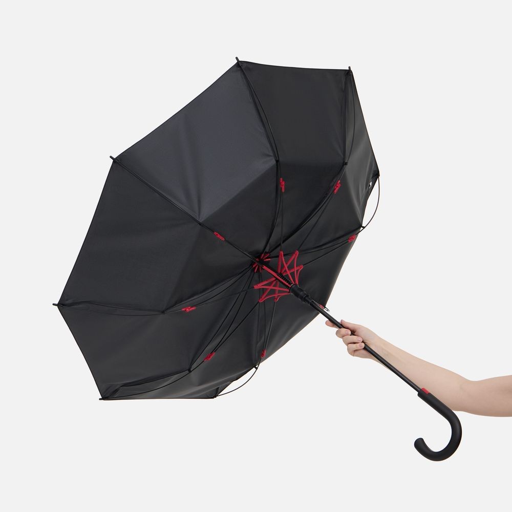 Легкий и невероятно прочный каркас из стеклопластика не боится порывов ветра. Сдержанный дизайн оживляет яркая деталь: цветные акценты на каркасе видны только при раскрытии зонта.Hidecolor — практичная классика с характером.