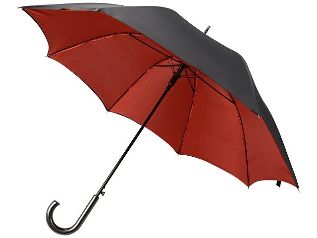 Интересный двухцветный зонт-трость спасет вас от дождя и легкого снега. Внешняя поверхность купола окрашена в черный цвет, а внутренняя имеет яркий, насыщенный оттенок, что непременно привлечет внимание. На купол зонта можно нанести логотип.