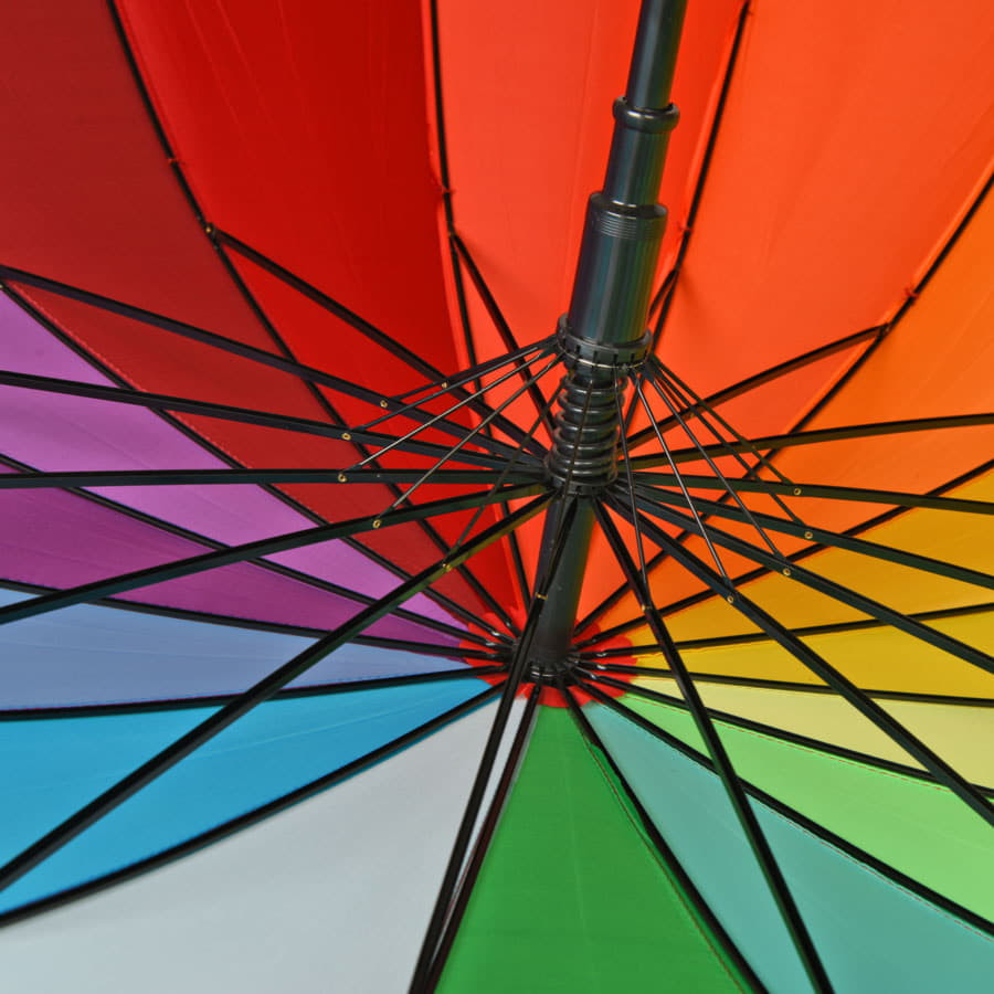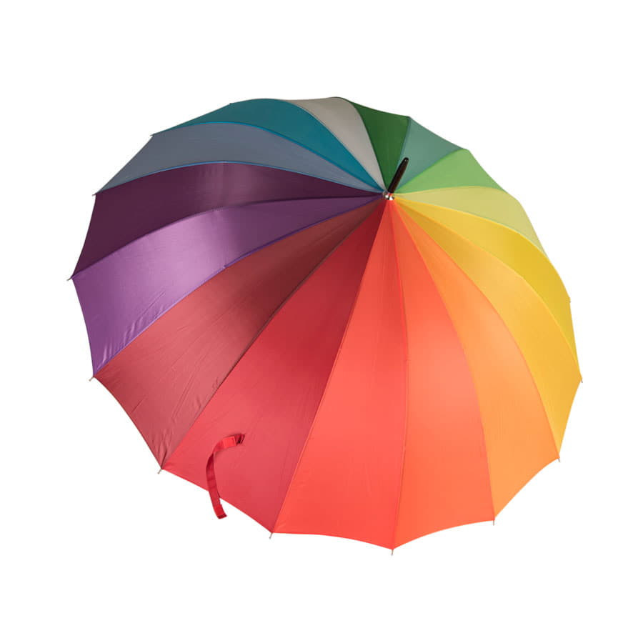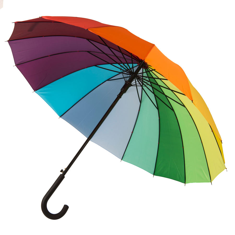 Зонт-трость "Радуга", пластиковая ручка, полуавтомат, Красный