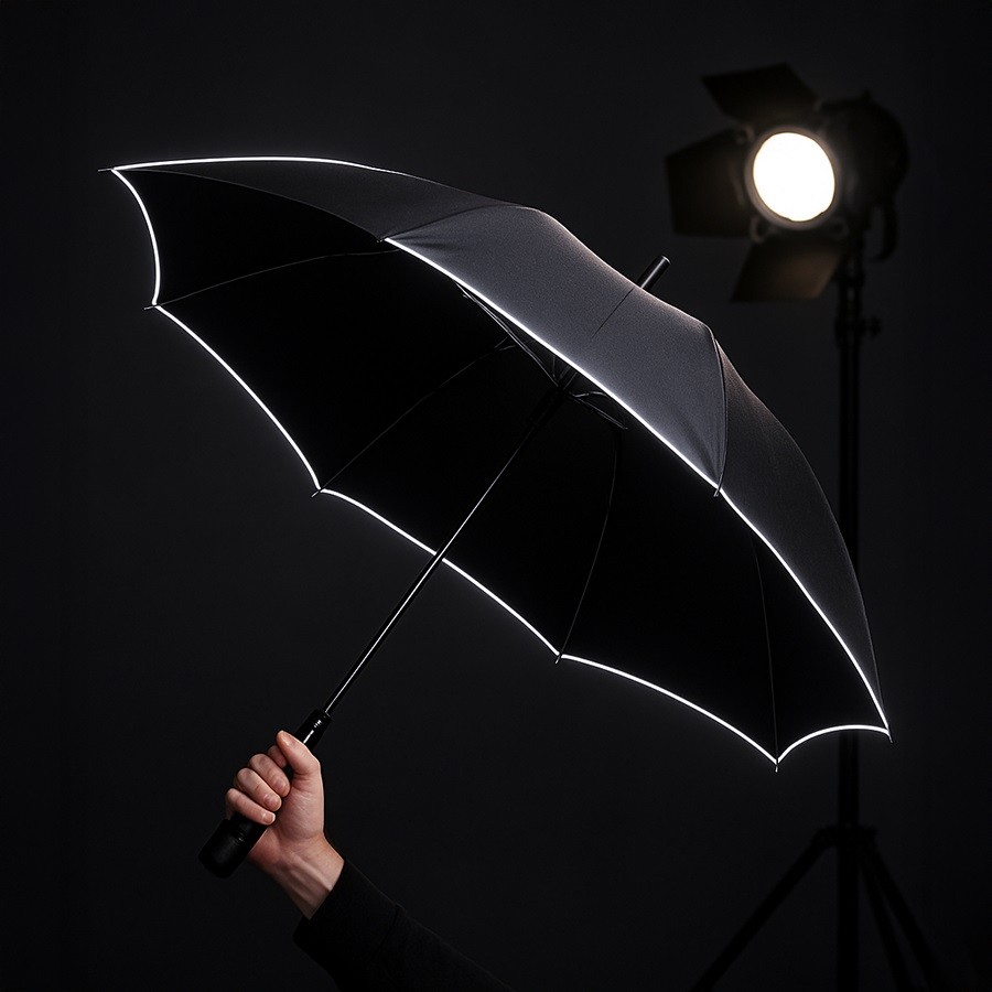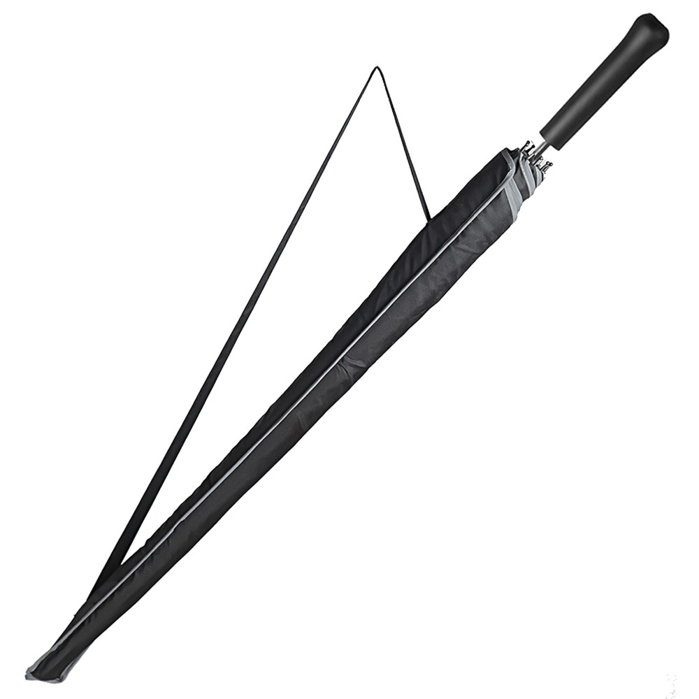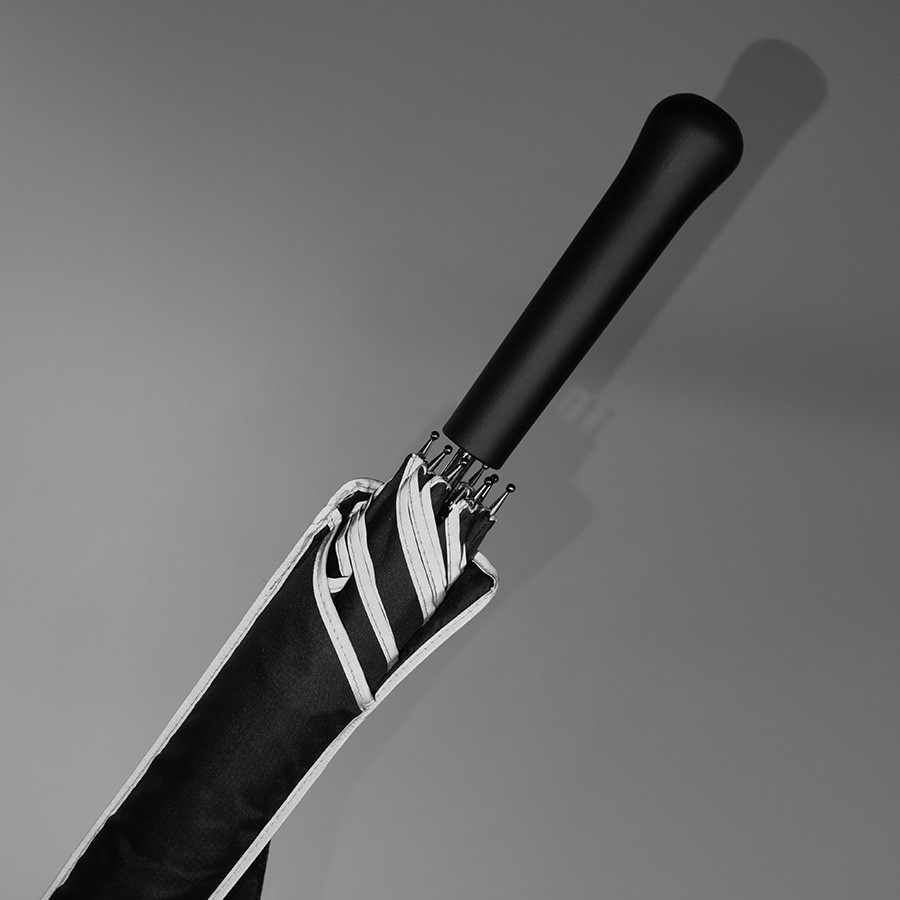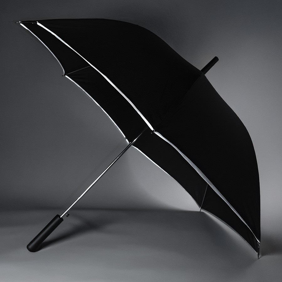 Зонт-трость "Reflect", полуавтомат, эпонж, чёрный со светоотражающей окантовкой в чехле с ручкой, Черный