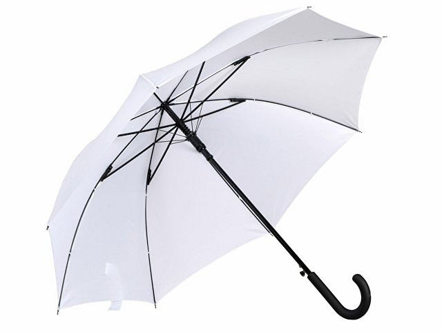 Купол зонта-трости выполнен из переработанного пластика. На ручке зонта расположена кнопка автоматического открытия. Гибкие спицы из стекловолокна делают зонт стойким к порывам ветра. Удобная ручка софт тач. Фиксирующая купол застежка на липучке шириной 3 см - дополнительная опция для нанесения вашего логотипа.