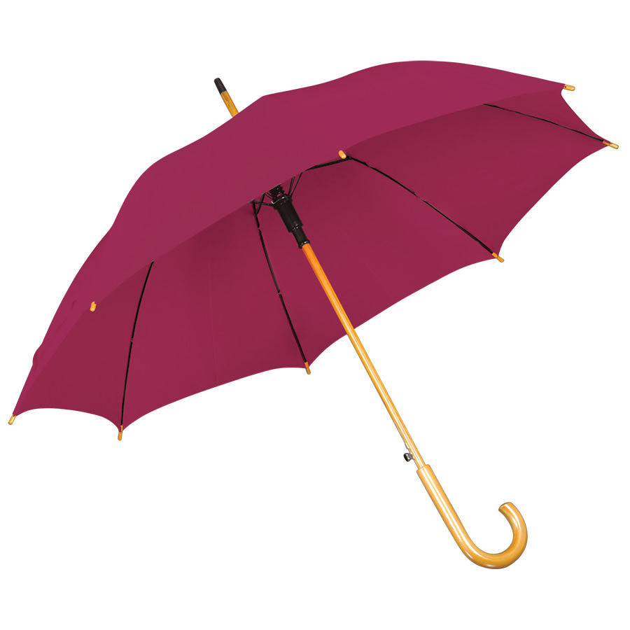 Зонт-трость с деревянной ручкой, полуавтомат; белый; D=103 см, L=90см; 100% полиэстер, Бордовый