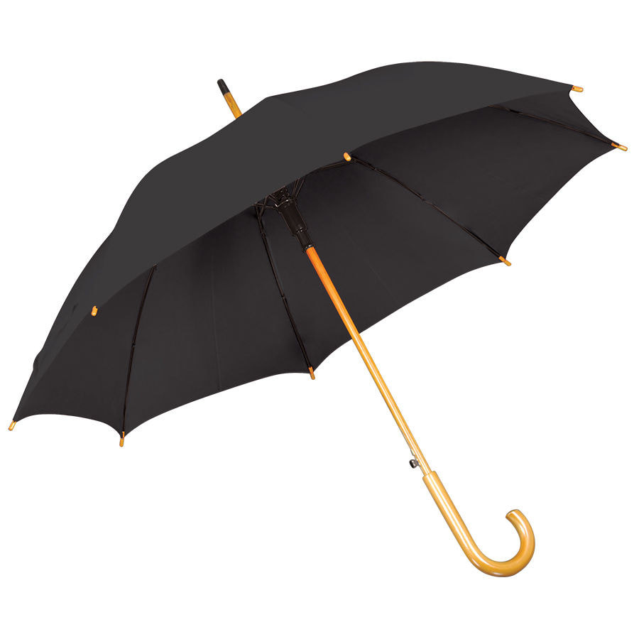 Зонт-трость с деревянной ручкой, полуавтомат; белый; D=103 см, L=90см; 100% полиэстер, Черный